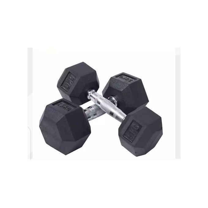 - La forme hexagonale empêche l'haltère de rouler lors des chutes.